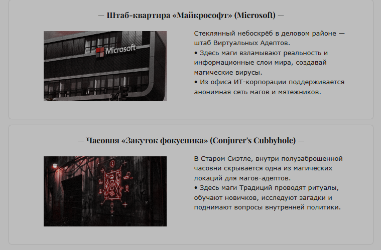 Eva Becken, И не только виртуалов. Просто вызвало вопрос утверждение "в Сиэтле нет представительств других магов", при этом в разделе "о городе" у нас есть и штаб виртуалов, и часовня традиций.