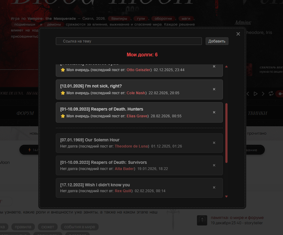 • Создана архивная тема для эпизодов: Архив отыгрышей - если в отыгрыше не было постов больше полугода, он сносится сюда. Если его нужно поднять, просто напишите в теме вопросов или АМС.